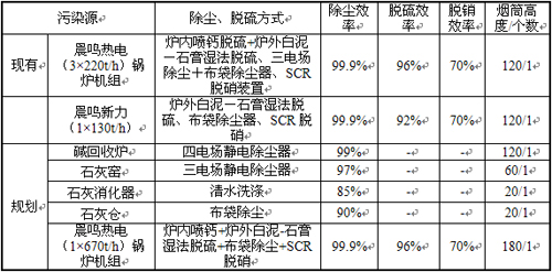 規(guī)劃建設鍋爐機組及現(xiàn)有鍋爐機組改造后煙氣中污染物SO2、煙塵、NOx排放濃度均能滿足《火電廠大氣污染物排放標準》(GB13223-2011)表2中大氣污染物特別排放限值標準(SO2 50mg/m3,煙塵20mg/m3,氮氧化物100mg/m3)。